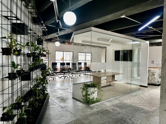 Oficina ubicada al frente del Parque de la noventa y tres con amplio balcón panorámico. Cuenta con 4 oficinas privadas, con varios espacios abiertos amplios para puestos de trabajo o para adecuar según necesidad, una sala de reuniones, cafetería con cocineta, tienes tres baños para mujeres y tres baños para hombre más un orinal. Cuenta con espacio para recepción, cuarto para archivo, lockers. Tiene diez garajes. Tiene portería, planta eléctrica y ascensor. Valor del canon mas IVA mas Admin.